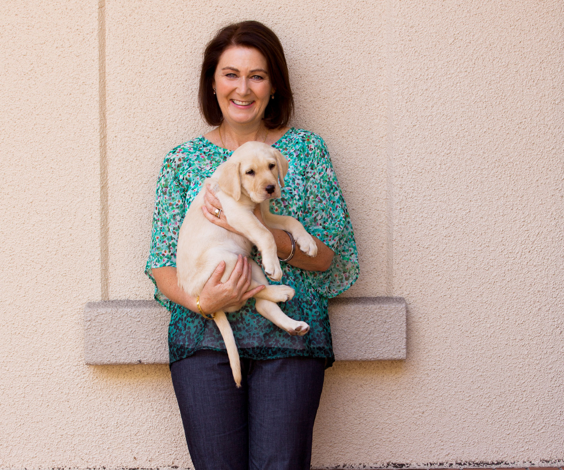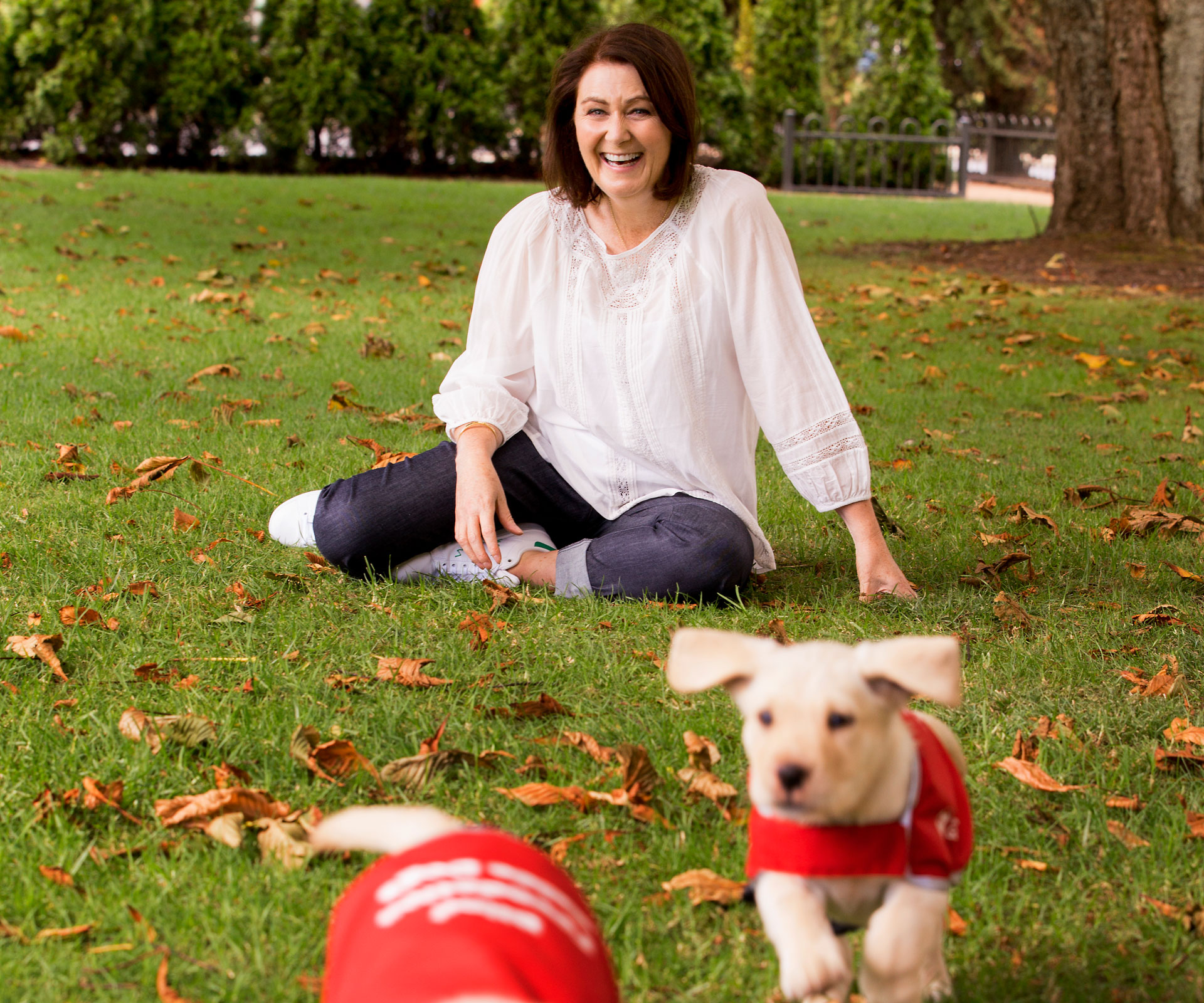 That is why, for the annual guide dog Red Puppy Appeal, you may come across her out on the street, standing anonymously with the other collectors, rattling a can for donations. And just like in previous years, many passers-by won’t even realise who she is.