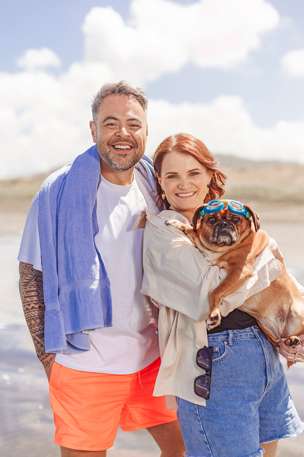 Doggy paddle, anyone? Nickson and Sarah’s pup Billie is goggled up.