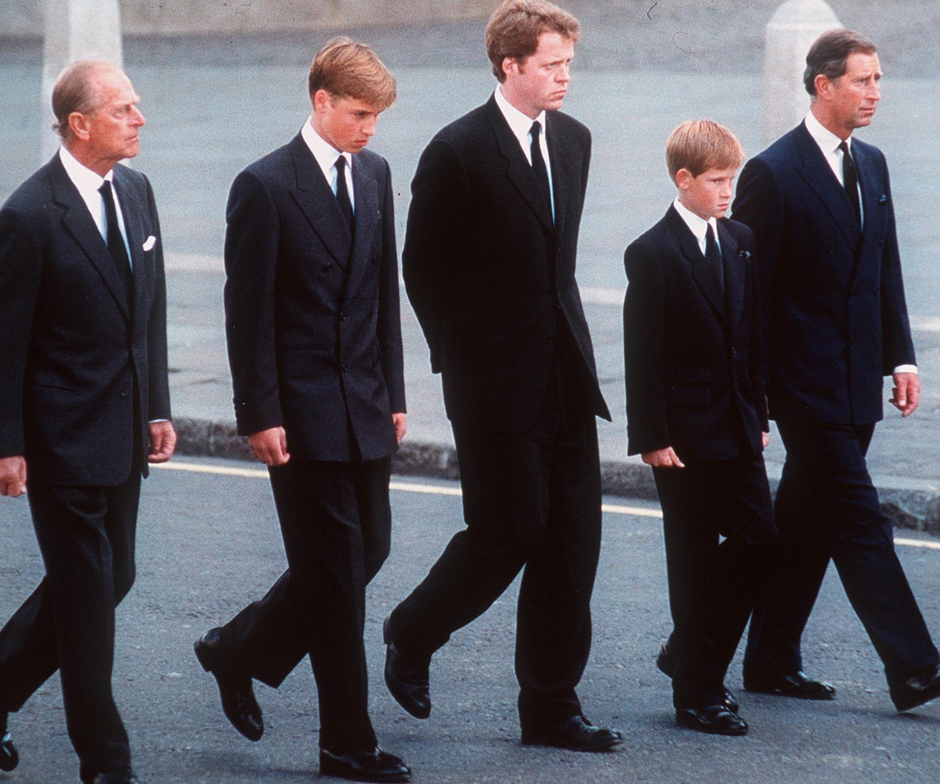 The royal siblings walked alongside their father Prince Charles, grandfather Prince Philip and uncle, Earl Spencer.