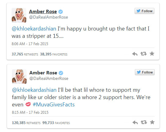 “‘I was a stripper since I was 15 years old,’ Amber Rose told Foxx,” Khloe tweeted.
