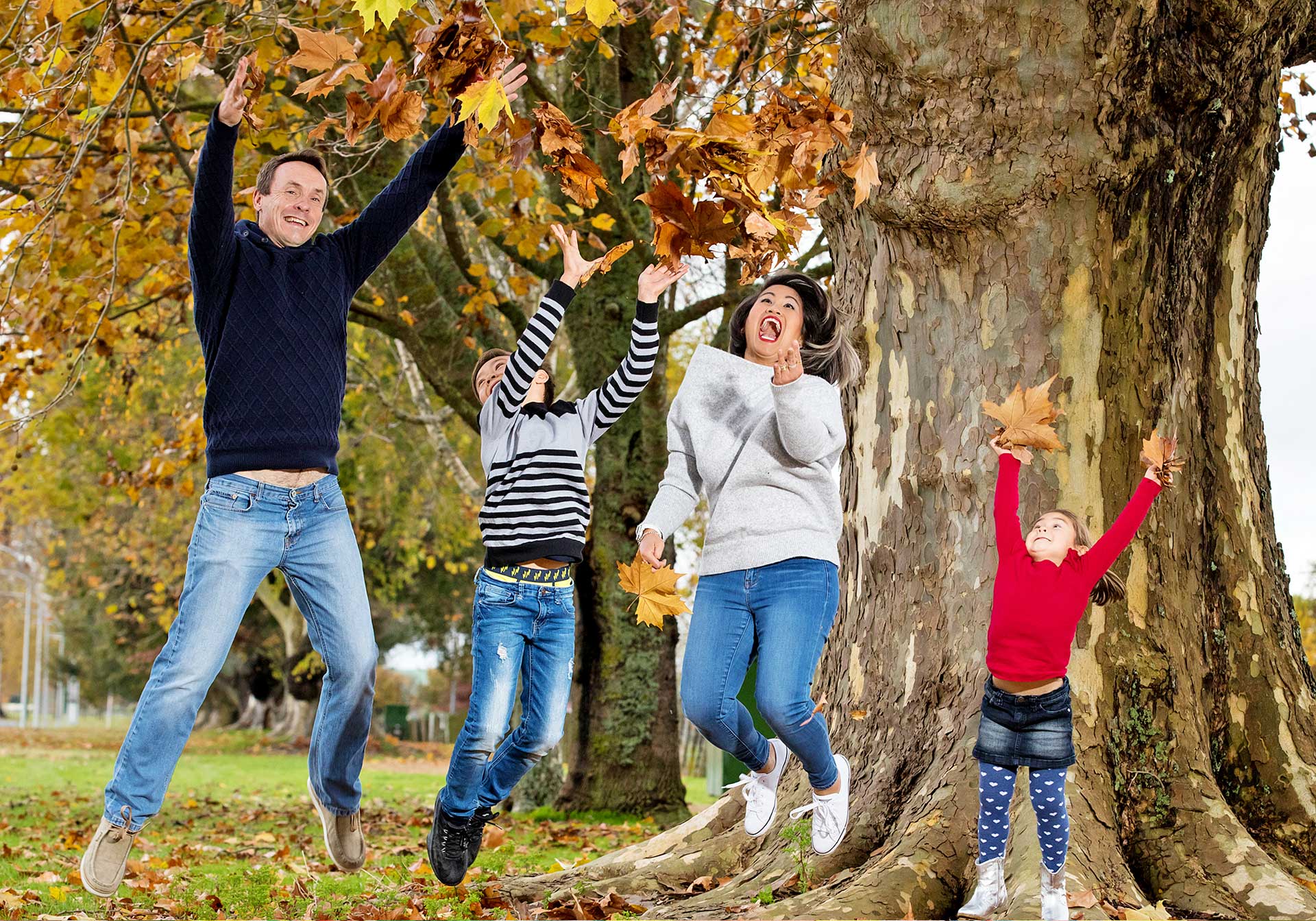 After recovering from bypass surgery, Cynthia has good reason to jump for joy with (from left) Graeme, Elliott and Elena.