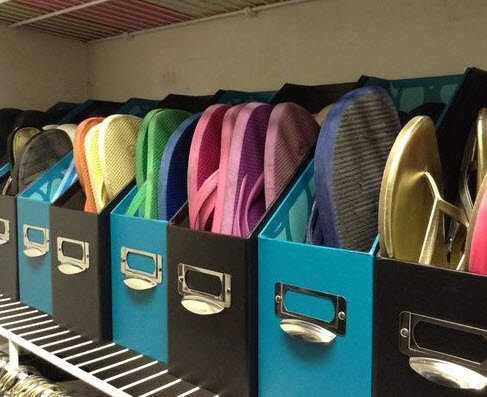 Old file or letter holders are a perfect place to tuck away your jandals for winter.Via