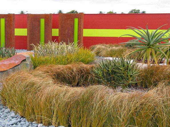When grasses first became the landscaping plant of choice a few decades ago, they were more often than not used singly or in rows in riverstone gardens. Now we’ve recognised that they look brilliant with a heap of mates in a casual setting. Chuck in a bit of wind, and you’ve got ever-moving grasses that sparkle in the light.