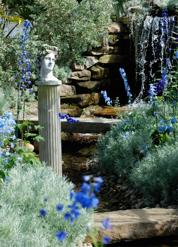 Sunken gardens, waterfalls and statuary evoke the idea of Roman ruins, and set the scene for a romantic garden of self-seeding plants