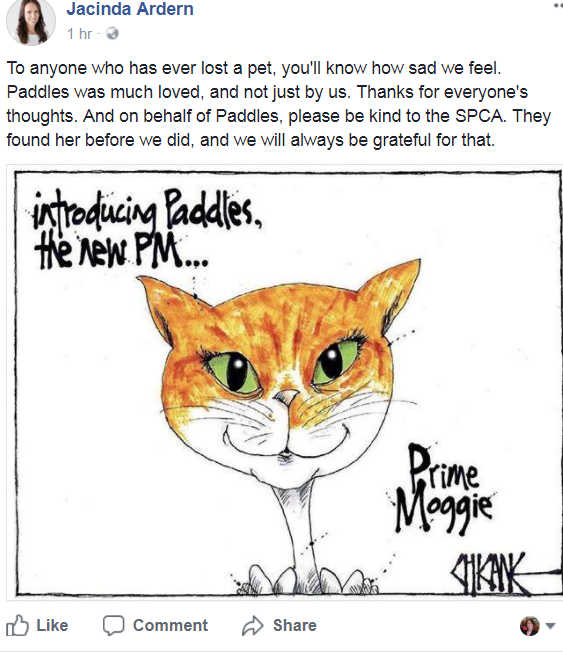 Paddles, who was an SPCA cat, shot to fame after Ardern became Prime Minister, with Vanity Fair reporting on his fame and an article written about him in a Danish newspaper. Paddles even had his own Twitter account.
