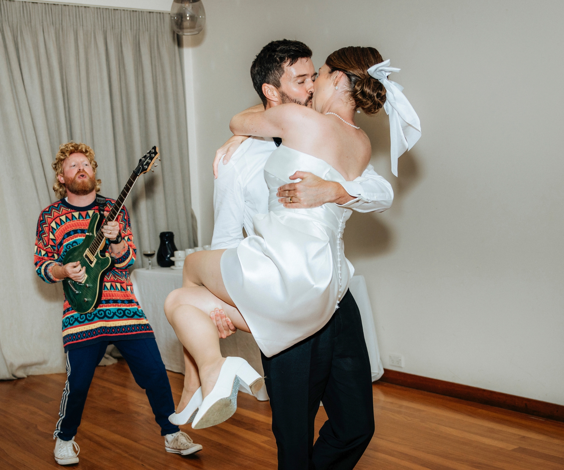 It’s not lost on Antonia and Dan how fortunate they are to have so many talented friends, with many of their guests among Aotearoa’s best-known TV and theatre stars. They’ll be forever grateful for their help making the wedding so memorable. Antonia grins, “They’re such special people to us, but they also have amazing talents, so we thought, ‘We’ve got to get them involved!’”