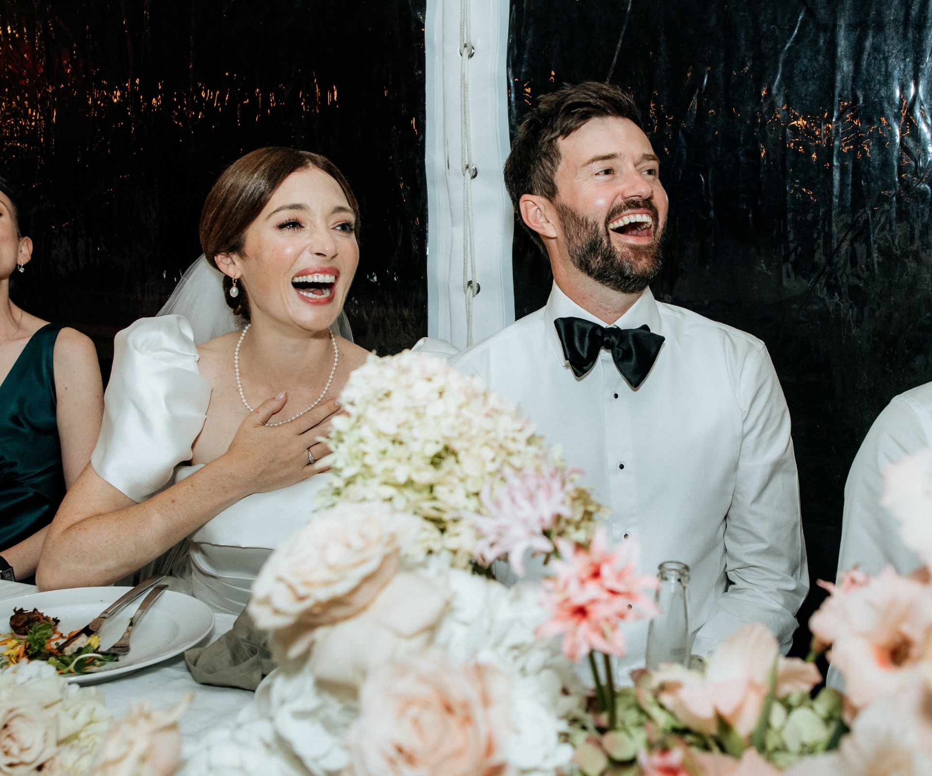 With Justine Russell Cowan officiating and the couple’s close friend, Shortland Street head writer and actress Jessica Joy Wood, helping to tell the story of their love, the ceremony begins. Dan and Antonia’s good friend, actress and writer Hannah Marshall, reads a poem she’s written, before the bride and groom exchange their vows.