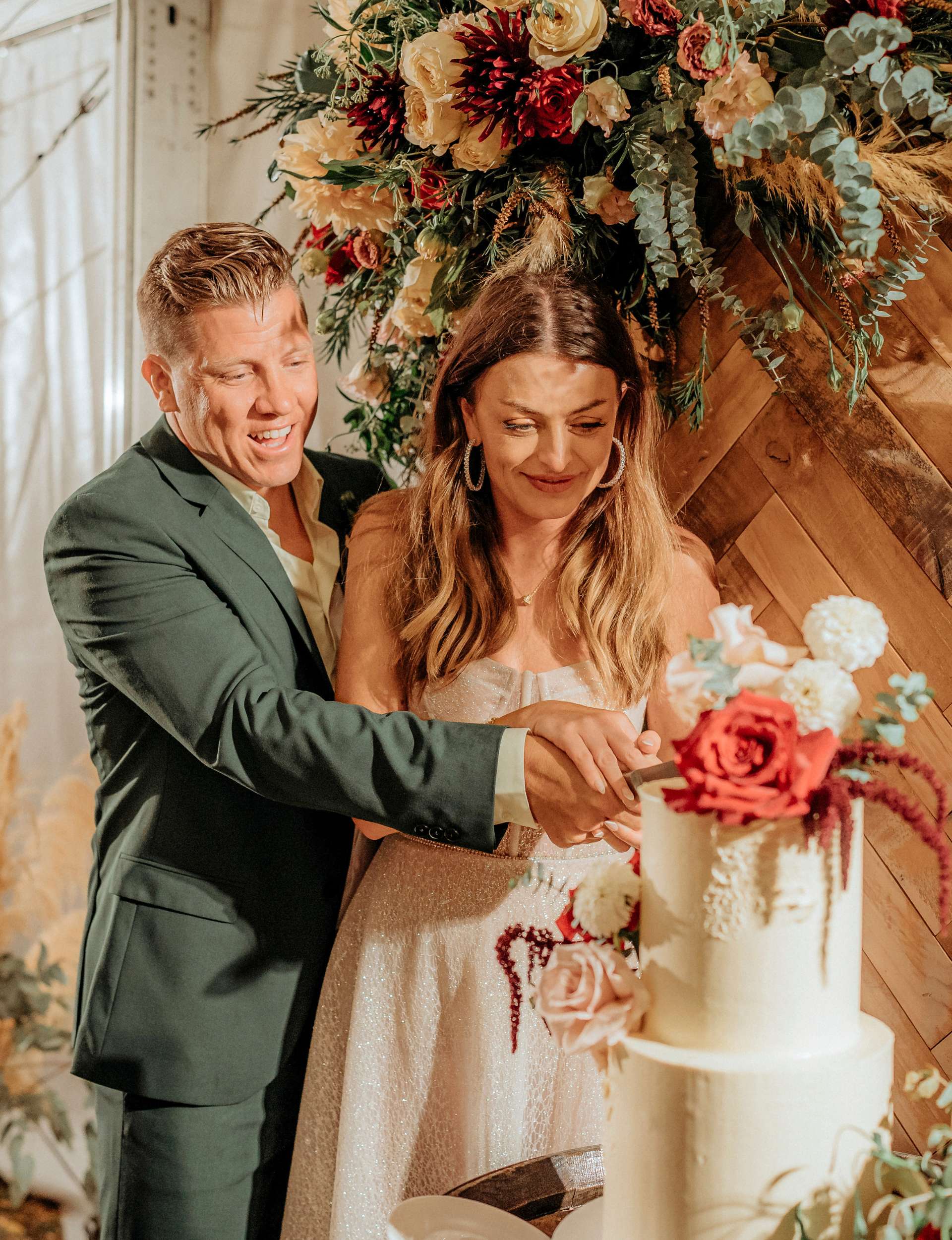 After the ceremony, guests sipped custom cocktails called Sneaky Kiwi and Nebraska Surf Club. Then, the newlyweds hit the floor for their first dance to a mash-up of All-4-One’s I Swear and Frankie Valli’s Can’t Take My Eyes Off You, having choreographed the performance themselves from Instagram videos.