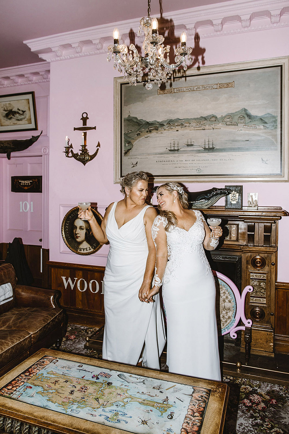 Radio host Lana Searle and her partner of five years, flight attendant Katie Cochrane, tied the knot in a stunning ceremony at Russell’s historic Duke of Marlborough Hotel in the Bay of Islands.