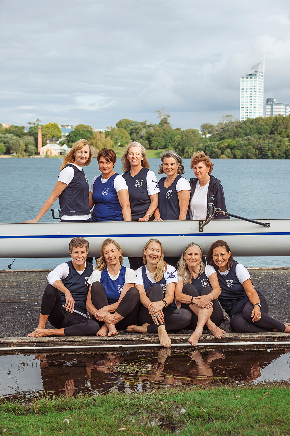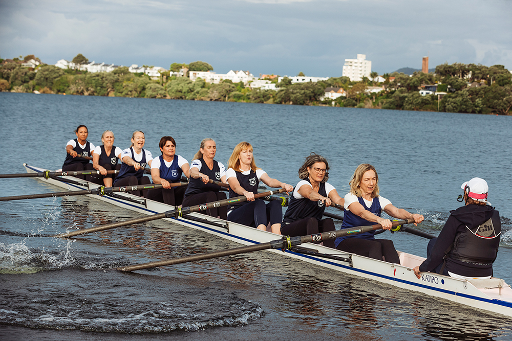 Getting a crew together was the wild dream of the only experienced rower, Fiona Trevelyan, who convinced a group of mums she had met while volunteering at their children’s regattas to try the sport for themselves. After a Learn to Row course at the North Shore Rowing Club, the Flying Swans were on their way.
