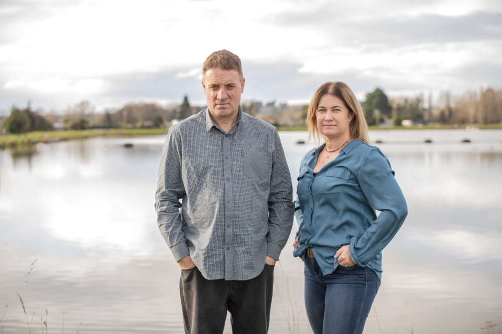 Paul and Karen at the pond where Lachie was found, says his son “was not the sort of kid who would run off”.