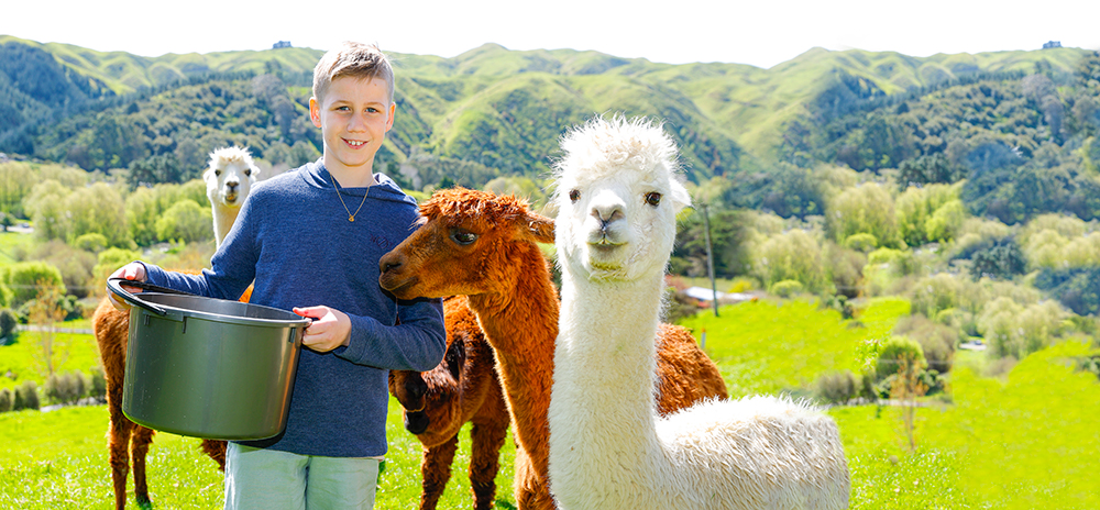 Jackson, who is now 10, often feels tired at the end of the day and likes to unwind on the banks of the family’s quiet Porirua farm, where they have six alpacas, two lambs, sheep, chickens, a rooster, three cats, Teddy the Labrador and even a guinea fowl.