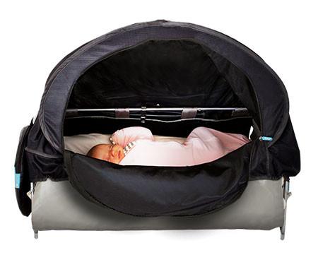 And so Fly Babee was born – a foldable, lightweight canopy device that attaches to airline bassinets to help block out distractions.