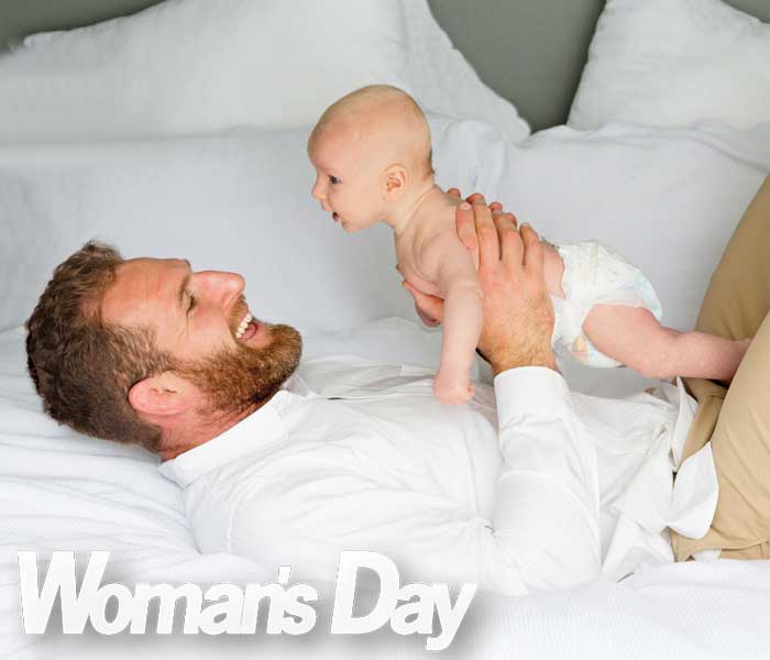 “Do ya know, what you’re doing, doing to me, Reuben, Reuben, Reuben, Reuben,” he croons – and it works! Soon, the wee lad’s gurgles subside and he drifts off to sleep during our exclusive shoot at the family’s Christchurch home. Kieran, 31, grins as he looks up. “Well, it goes something like that, anyway!”