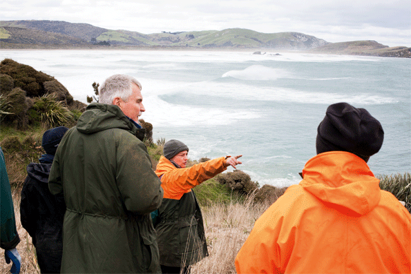 We’re not far from Owaka, in the heart of the Catlins, Otago, at an isolated section of coast with DOC ranger Cheryl Puller, two co-workers and five volunteers. We’re on an annual egg hunt. Our mission: to find yellow-eyed penguin nests and, with luck, warm eggs inside.